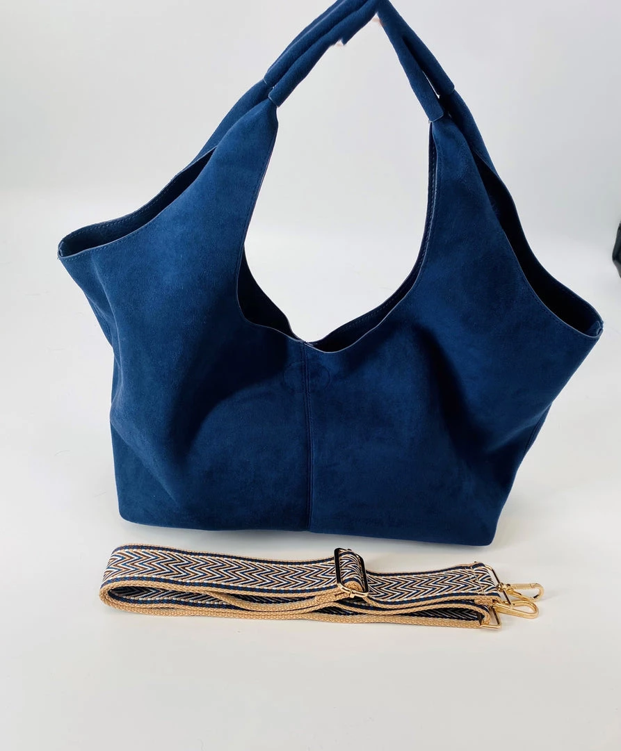 Ahdorned The Two In One Hobo In Navy With Herringbone Strap Handbags