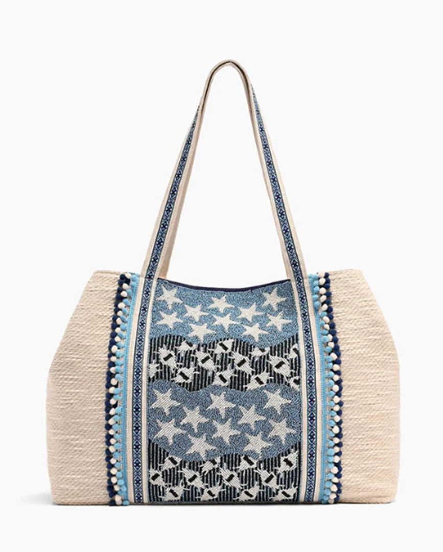 America & Beyond The Beaded Evil Eye Star Tote In Ivory Blue