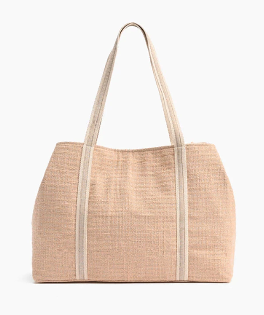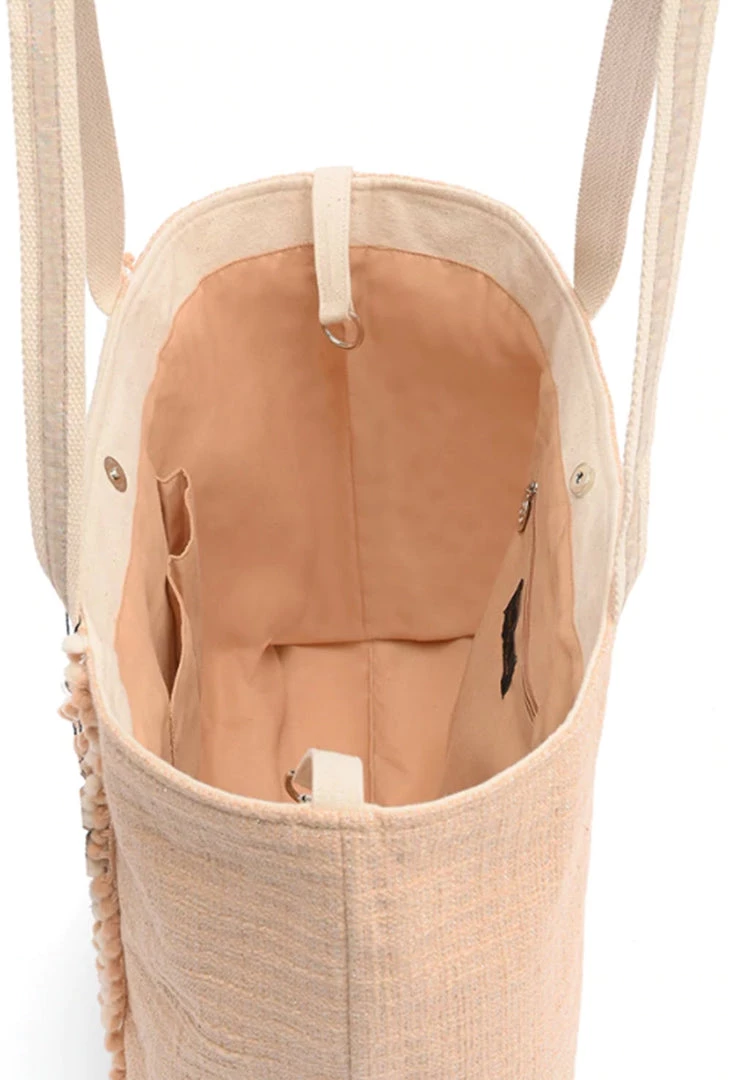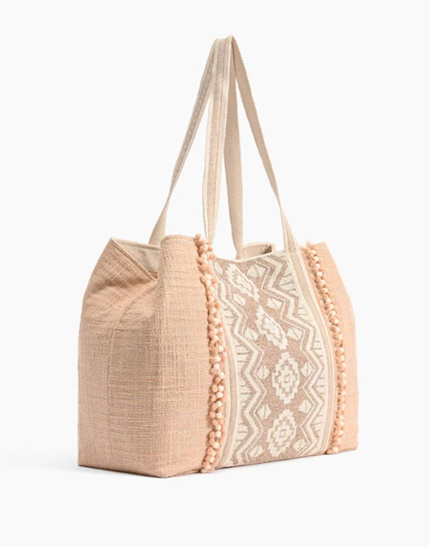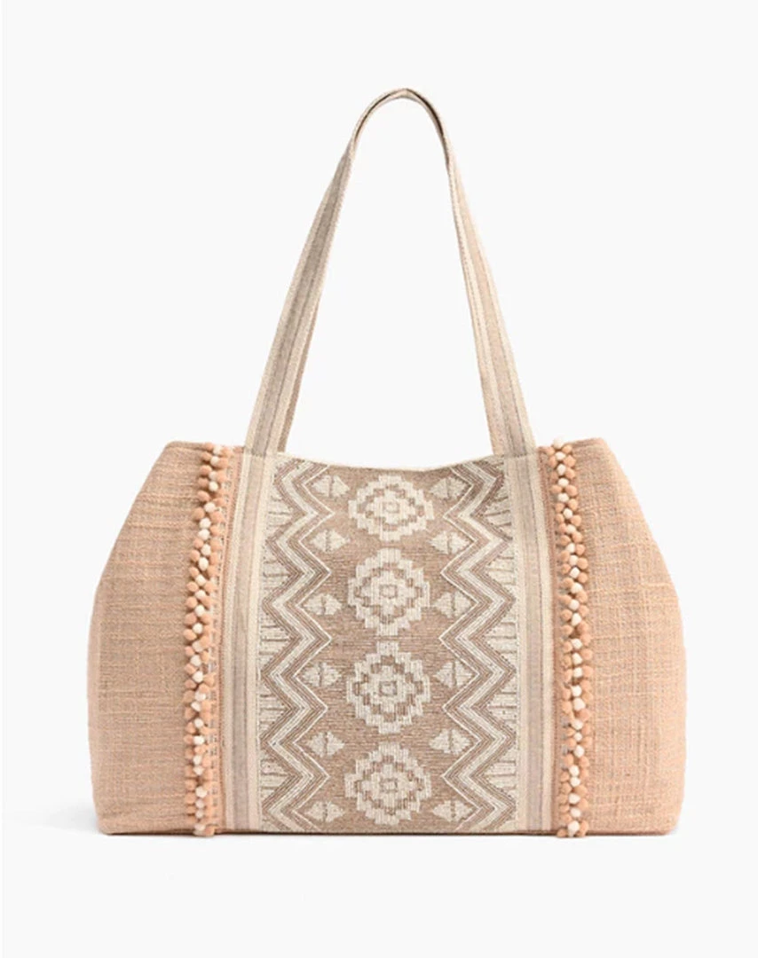 America & Beyond The Embellished Aztec Tote In Rose Gold Natural Handbags