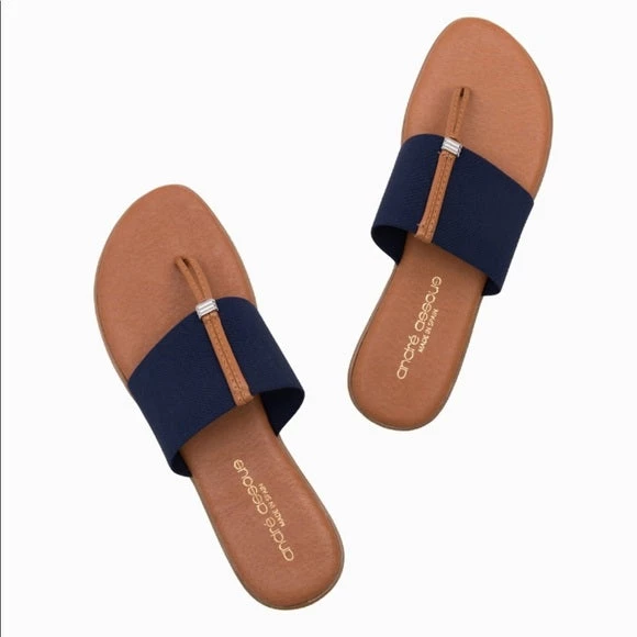 Andre Assous Shoes The Elastic Thong Sandal In Navy