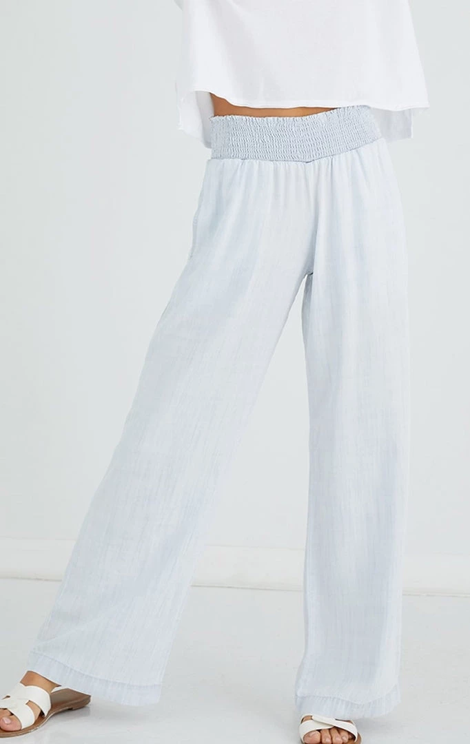 You will live in these flowy wide leg pants all season! These tencel pants feature a smocked elastic waist and slant pockets.