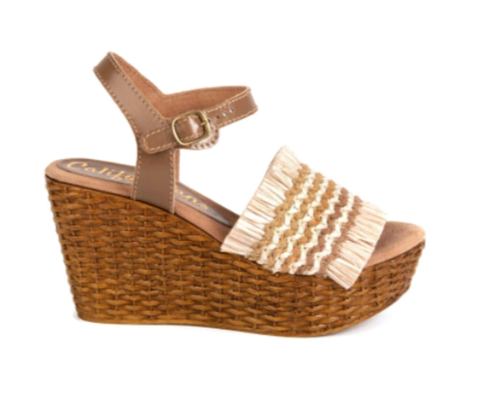 Californians Shoes The Raffia Crochet High Rattan Wedge In Brown