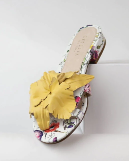 Cecelia Shoes The Flower Slide In Yellow Multi