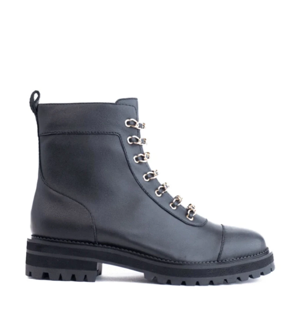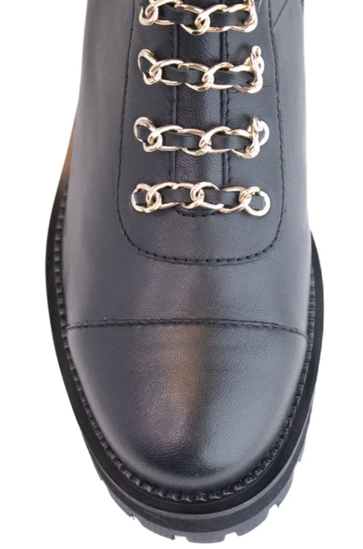 Cecelia The Chain Lace Combat Boot In Black Shoes