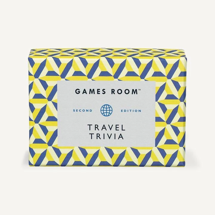 Get ready to travel the world with this Travel Trivia including 140 question cards with multiple choice answers. Packaged in a geometric print box with instructions included.