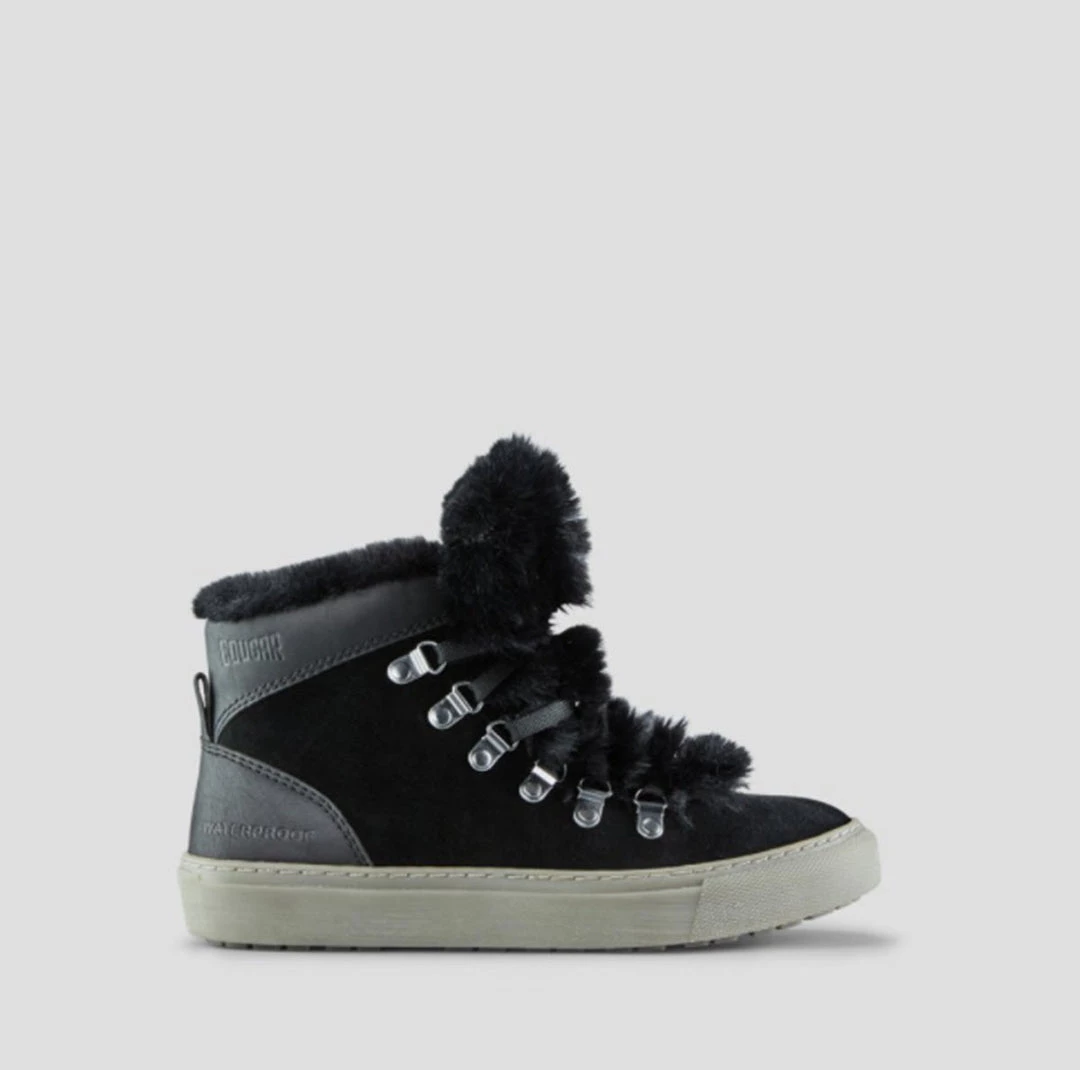 Keep your feet warm & dry without losing your cool in these ankle high waterproof lace-up sneaker with faux fur tongue. Suede & leather upper, faux fur & anti-slip rubber sole. Whole American size only. It you are a 1/2 size, next whole size recommended.