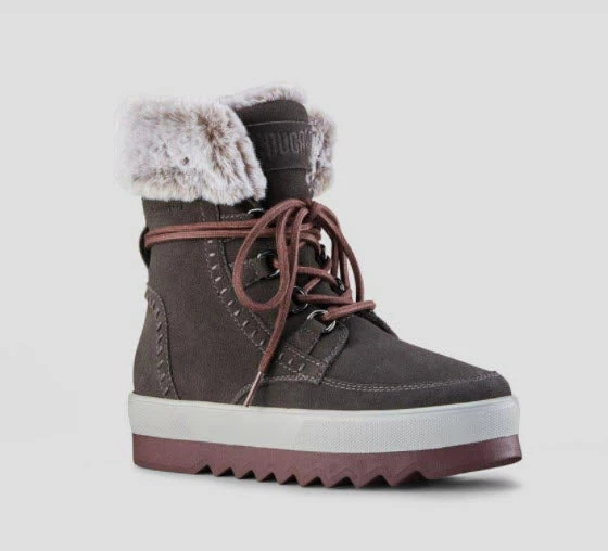 Cougar The Waterproof Fur Collar Lace Snow Boot In Pewter Shoes