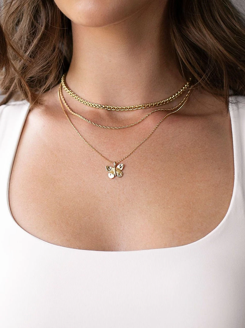 This 14K gold fill chain and 14K gold plated butterfly charm will add a flare to any outfit. Perfect for layering or wearing on its own! Made in New York.