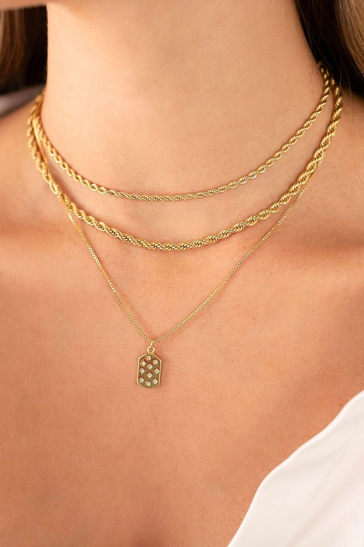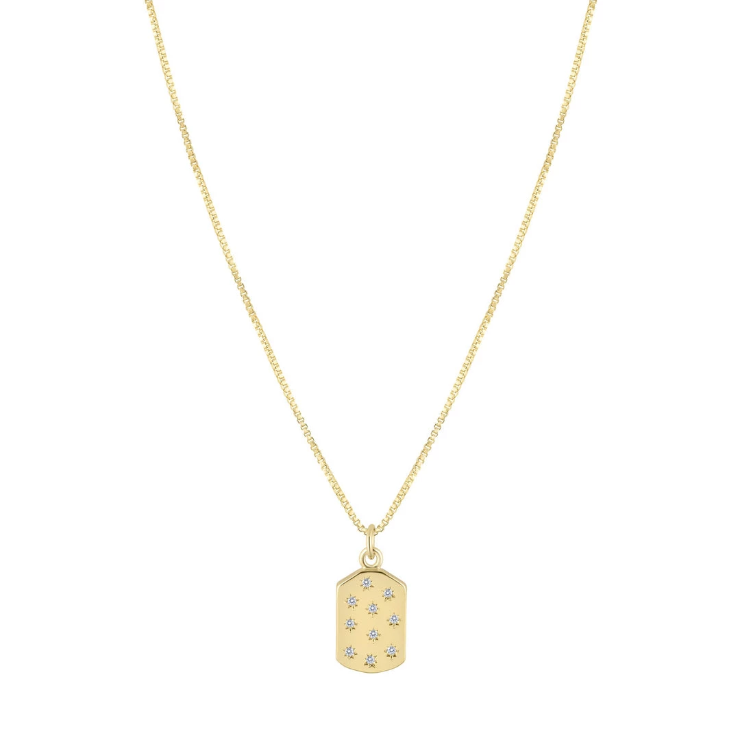 14K gold filled chain featuring 14K gold filled tag with CZ accents. Perfect for layering! Made in New York.