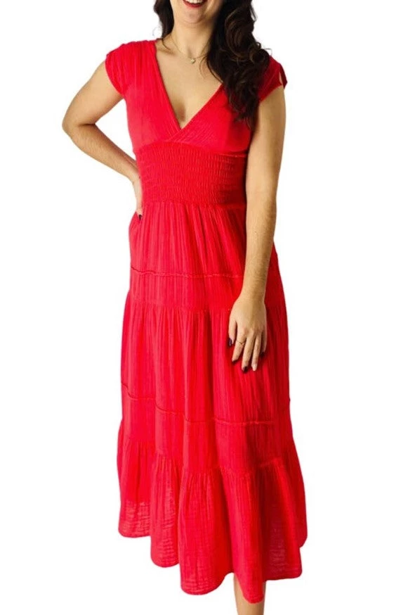 Felicite Contemporary Clothing The V-Neck Smocked Maxi In Bombshell