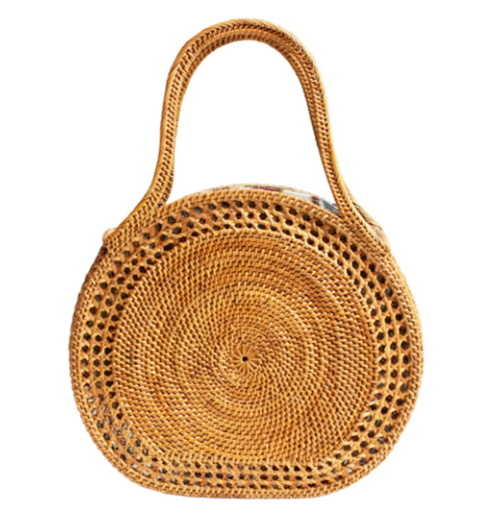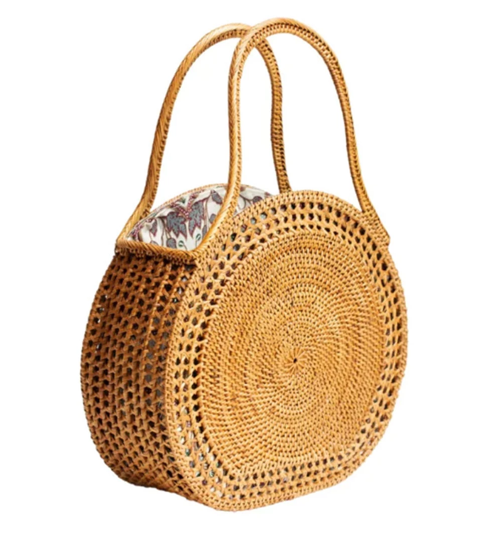 Practical and on trend! Fit all your essentials in the round structured raffia handbag. Features lined interior and flat bottom.