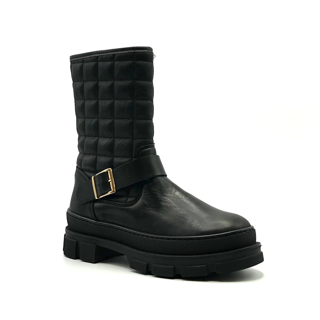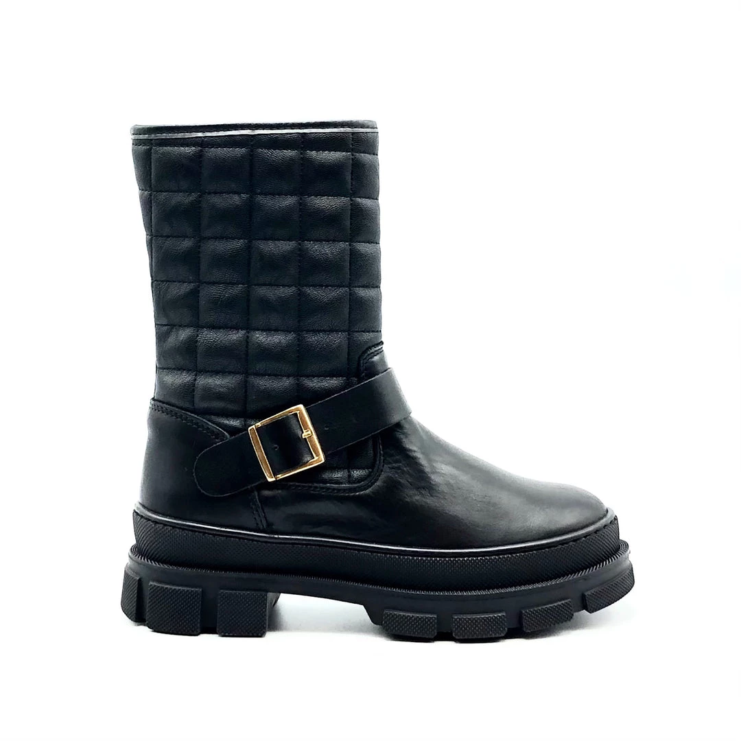 SKU: palpa-6661960761480 Categories: Booties & Boots, Shoes Tags: Biker, Black, Booties, Boots, Leather, Porronet, Quilted