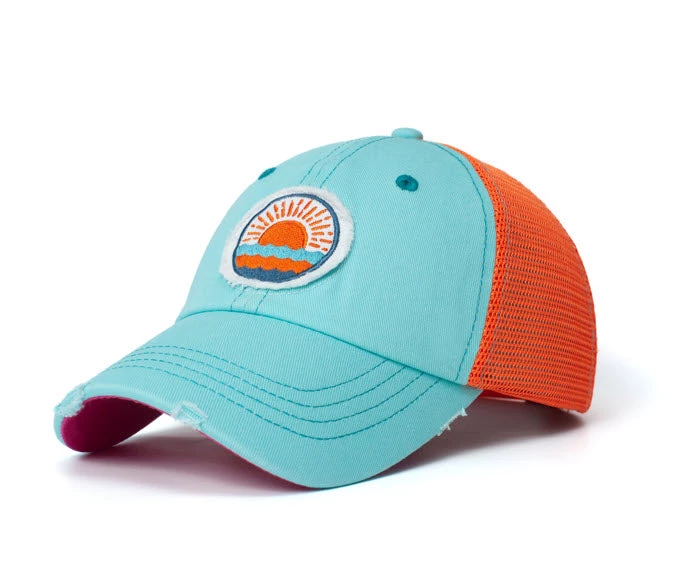 Shady Lady The Salty Trucker Hat In Aqua And Orange Accessories