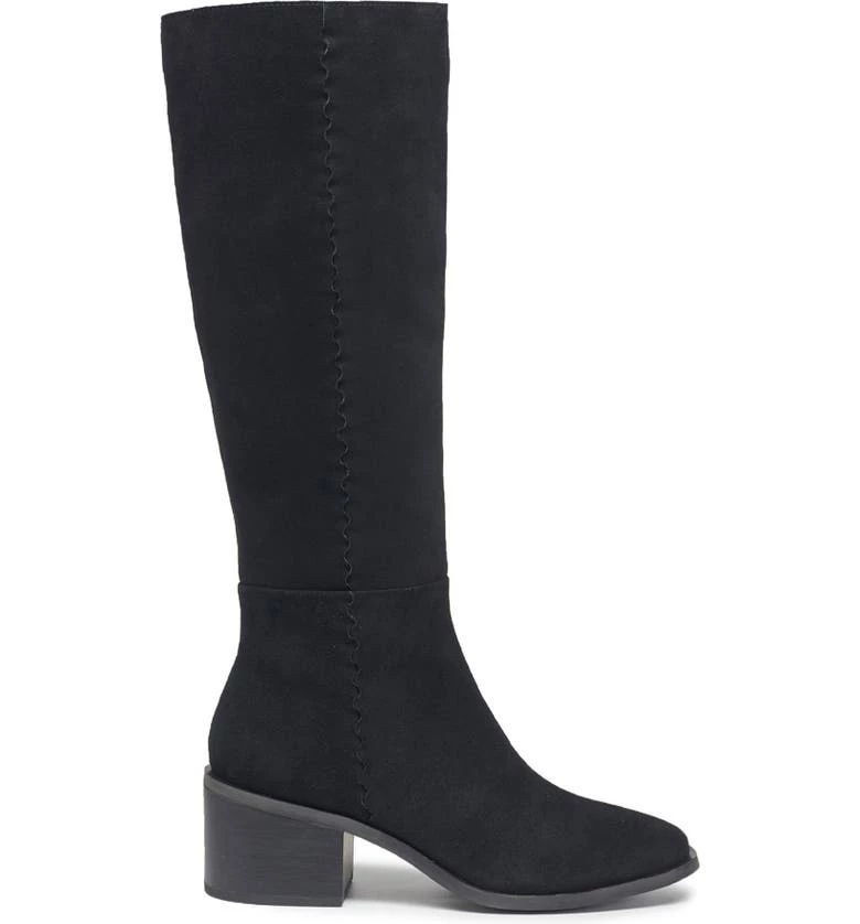 SKU: splendid-6715277803656 Categories: Booties & Boots, Shoes Tags: Addison, Black, Boot, Knee high, Mid stack heel, Side zip, Suede, Tall boot