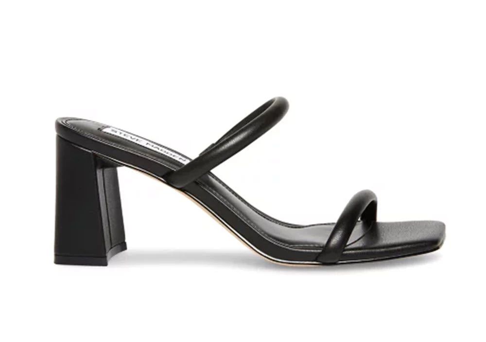 Steve Madden The Mid Heel Two Band Slide In Black Shoes