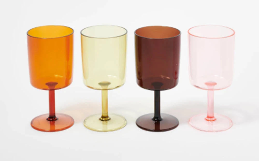 Get the party started with the perfect cocktail accessories! Set of four 8.5oz plastic wine glasses. Hand wash only.