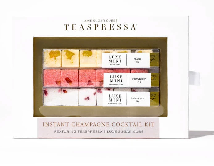 Enjoy these instant champagne cubes that help you create a fun drink with no hassle! These naturally infused flavored sugar cubes are made with all-natural ingredients and are paired with brut sweet sparkling wine, sparkling water, spirits, and iced teas. The set includes three Luxe Minis: peach, raspberry and strawberry. Made in the USA.
