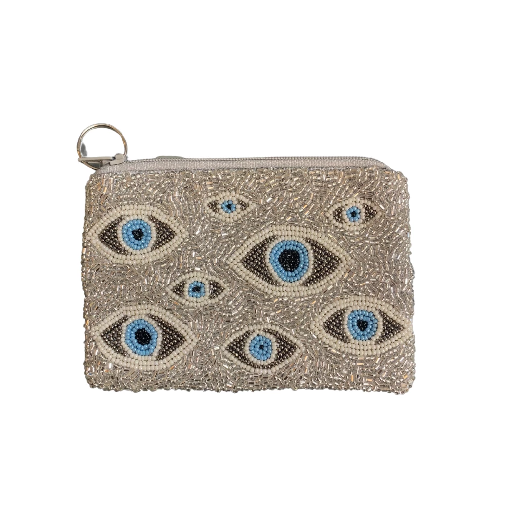 Tiana Designs Accessories The Beaded Mini Evil Eye Pouch In Silver