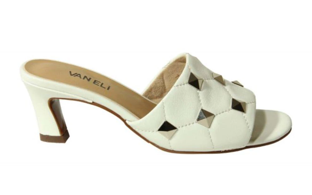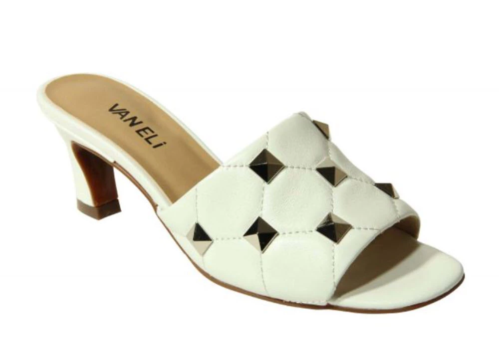 Vaneli The Mid Heel Quilted Pyramid Stud Slide In White